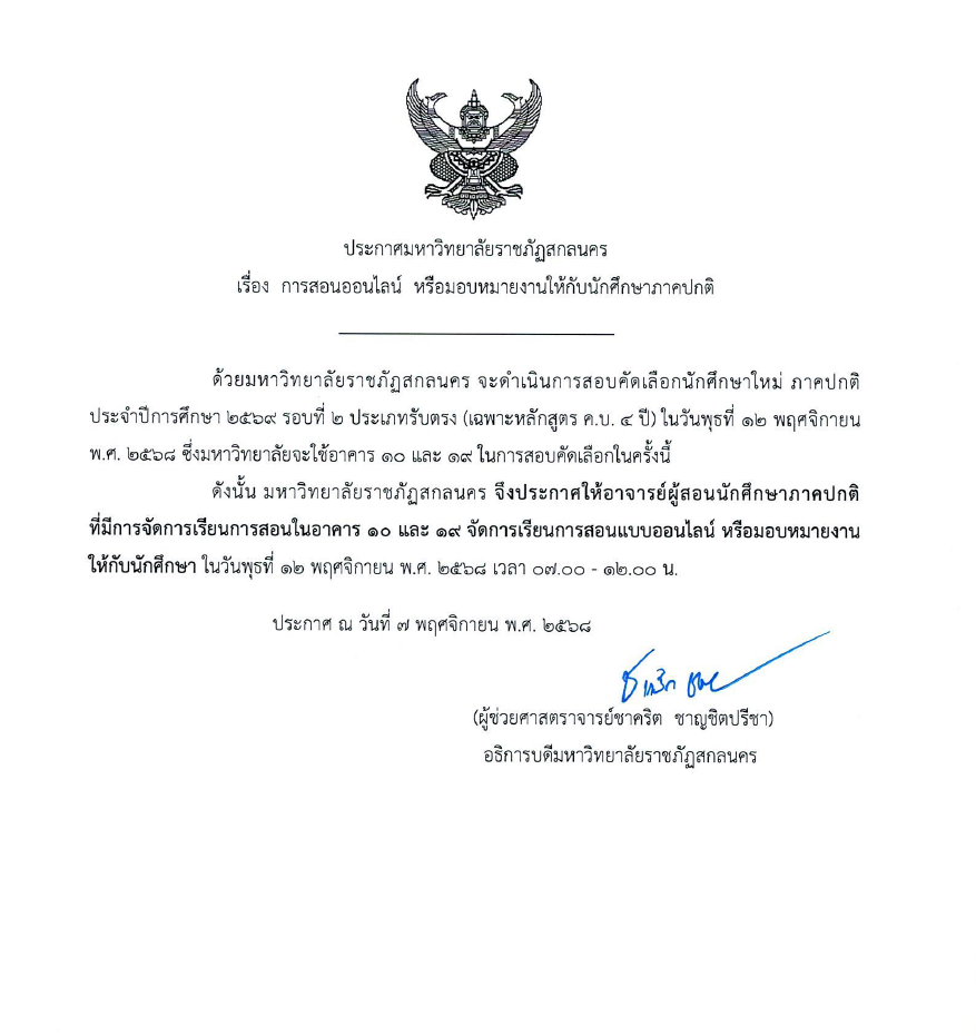 ประกาศ เรื่องการสอนออนไลน์ หรือมอบหมายงานให้กับนักศึกษาภาคปกติ วันที่ 12 พฤศจิกายน 2568 เผยเเพร่เมื่อ พฤศจิกายน 10, 2568พฤศจิกายน 10, 2025 โดย Admin 25 เข้าชม FacebookFacebookXXLINELine